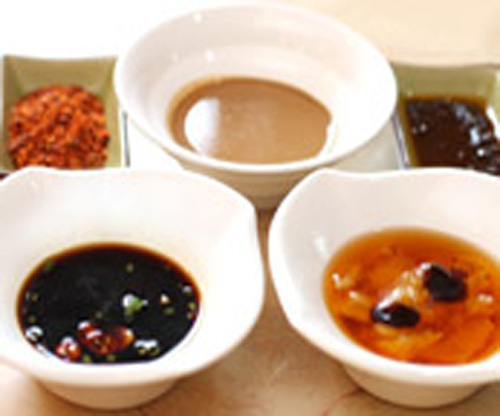 火锅(海鲜酱料):热猪油1市斤与“炒焗佐料精”1市斤先混合,酱油和豆酱5市斤、青莞茜1市斤,白糖、辣椒、葱、姜各半市斤,混合后用绞肉机磨成酱料。(二天内鲜用)