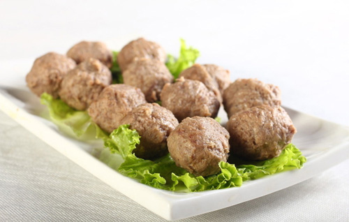 加工牛肉丸:牛肉浆100市斤、“炒焗佐料精”7市两,白糖4两,盐适量搅拌均匀做丸。