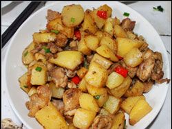 现实生活中,很多人都喜欢吃菜而忽略了饭,下面就介绍一道菜,这道菜纯属给不想吃饭的自己,因为光吃土豆就管饱了,且鸡肉含有维生素C、E等,蛋白质的含量比例较高,而且消化率高,容易被人体吸收利用,有增强体力、强壮身体的作用。另外含有对人体生发育有重要作用的磷脂类,是中国人膳食结构中脂肪和磷脂的重要来源之一。