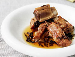原料:排骨600克、普洱茶10克、黄酒10克、盐4克、糖2克、炒焗佐料精、淀粉