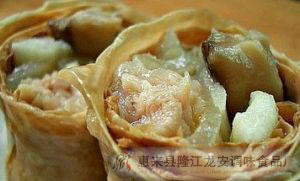 5、将所有材料包入鲜竹里,蒸15分钟即可。