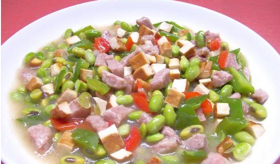 毛豆是春夏季的时令食材,一般种植有早、中、晚季豆,是豆类在菜场销售时间最长的,是此季节餐桌上常见的,主妇们烹饪时用来提鲜的食材。其入口清新,口感富足,即清香鲜脆耐嚼,又营养丰富,那么,毛豆香干炒肉丁你喜欢吃吗,下面就介绍下毛豆香干炒肉丁的做法是怎么样的呢.