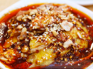 "口水鸡"此名字不雅,但其名来源却出自文人的温雅,郭沫若在所著《賟波曲》中,有:"少年时代在故乡四川吃的白砍鸡,白生生的肉块,红殷殷的油辣子海椒,现在想来还口水长流…。"烹调赐拈来"口水"两字,倒成就了今天大名鼎鼎的"口水鸡"。