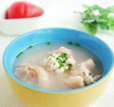原料:薏米、猪蹄、葱、姜片、白胡椒粉、料酒、盐、调味料适量。