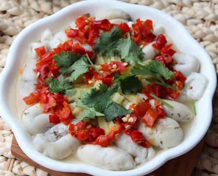 原料:墨鱼蛋、剁椒、生姜、蒜末、食用油、香菜、调味料。
